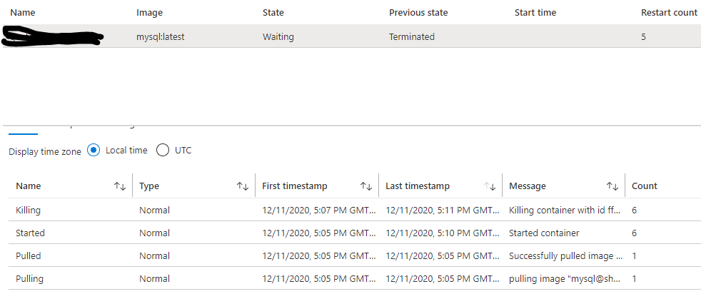 我试图在ACI上运行一个映像,每当它试图在这个pulling image "mysql@sha256:asakjvnankvaknaklfvkabjaoenla"中提取映像时,容器就会失败,而在命令中,我给出了图像为mysql:latest。