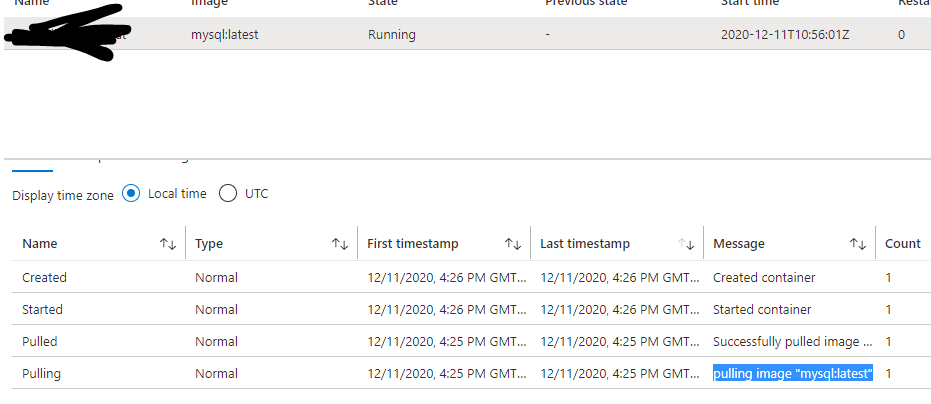 一个可能的解决方案是,您可以将MySQL映像推送到ACR,然后使用它创建ACI,这样,所有的事情都是相同的,那么所有的ACI都成功或失败。