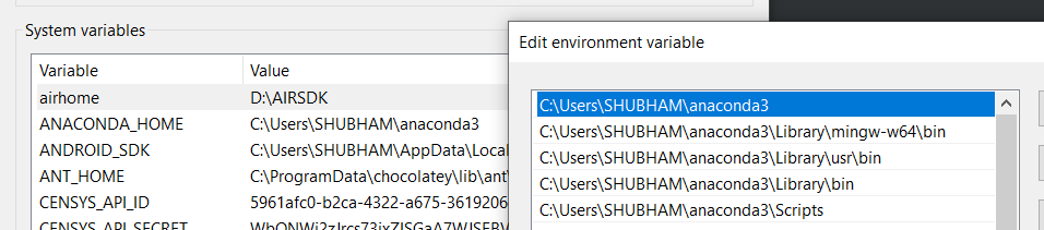 envs directories : C:\Users\SHUBHAM\anaconda3\envs