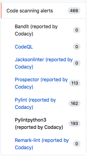 我最近在我的回购上启用了GitHub Codacy扫描。Pylint*和Prospector模块(如果这是正确的术语)报告了许多警告: