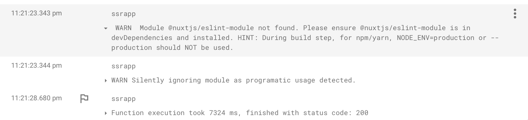 nuxt.config.js包含一个下一个构建模块,它在服务器上创建一个问题(在ssrapp firebase函数中)
