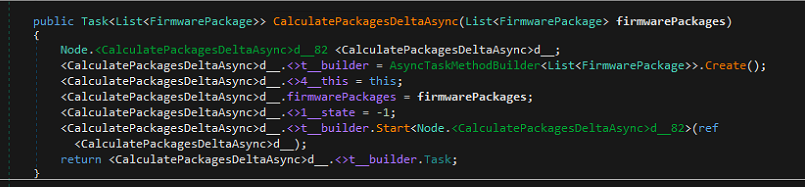 public async Task<List<FirmwarePackage>> CalculatePackagesDeltaAsync(List<FirmwarePackage> firmwarePackages) {