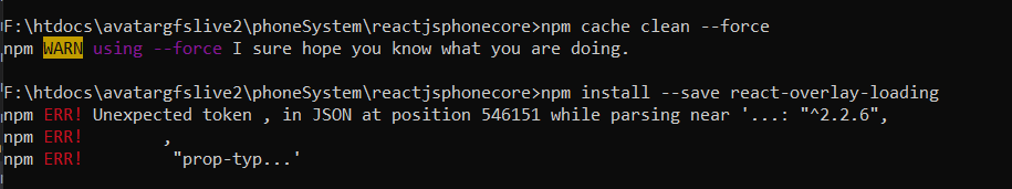 因此,我试图安装反应覆盖加载,但它仍然显示错误,如上面。