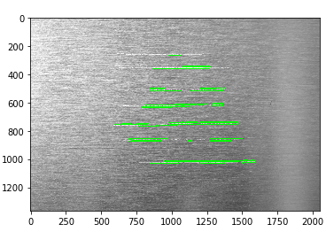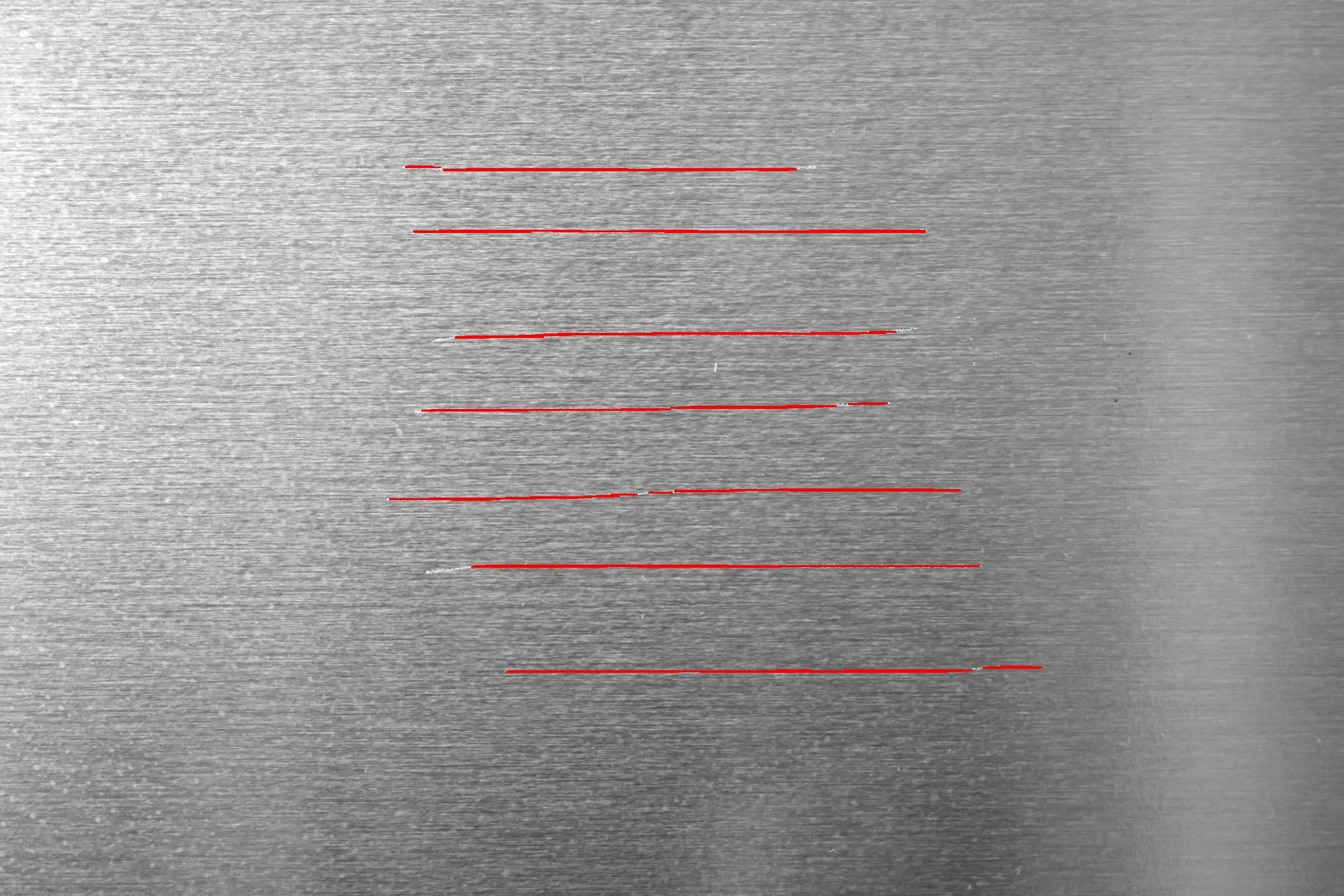 首先,这是我的原始图像,我试图检测缺陷(平行线)在刷铝表面。