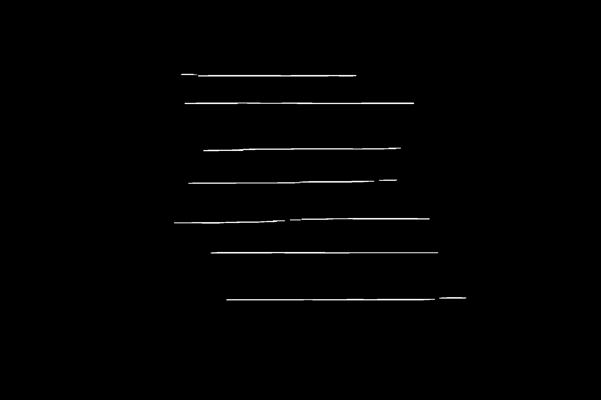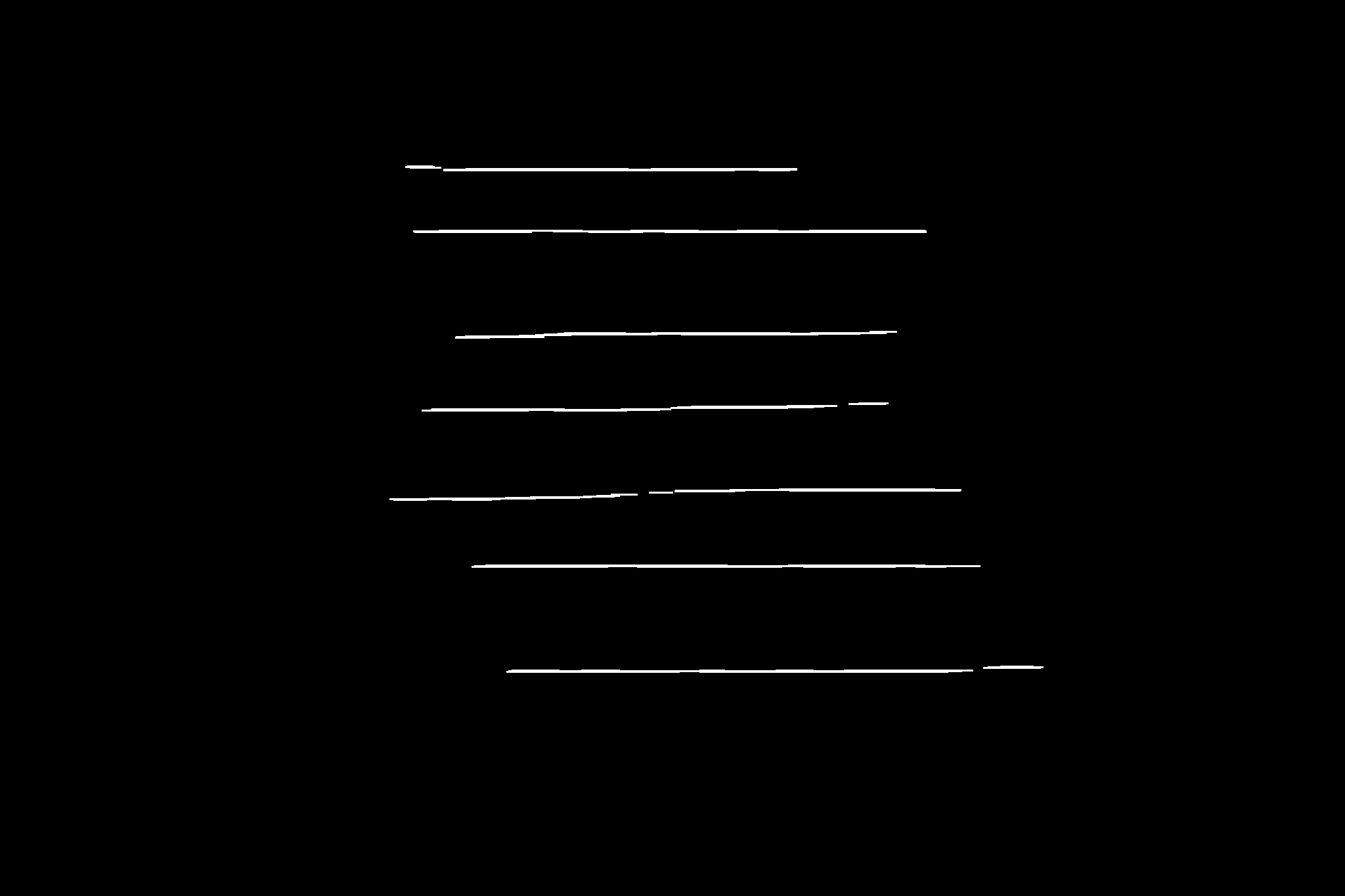 lines = cv2.HoughLinesP(morph, 1, 30*np.pi/360, threshold, minLineLength, maxLineGap)