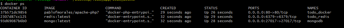 - "./mongo/docker-entrypoint-initdb.d:/docker-entrypoint-initdb.d"Docker ps命令显示: