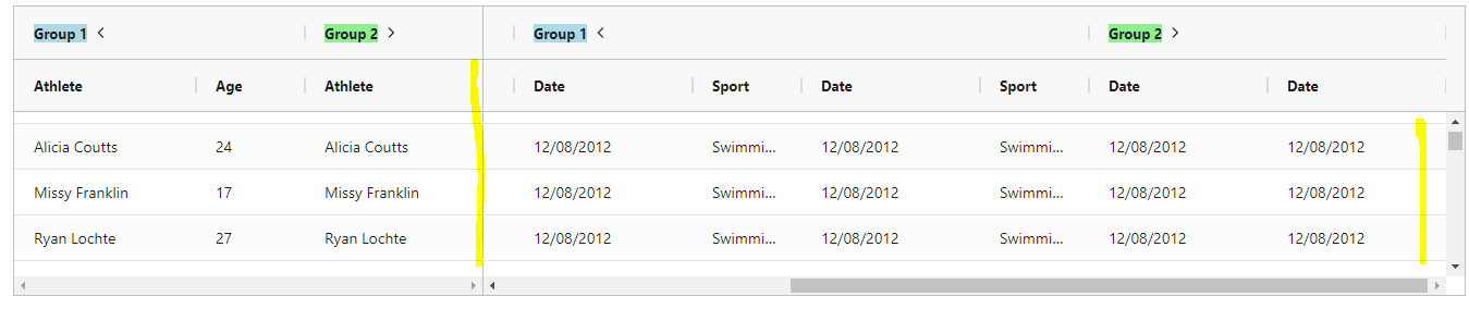 我想要两个滚动条。对于图像中显示的黄线处的每个块