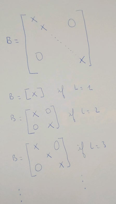 在应用矩阵的“对角线切割”后,重复复制和粘贴两个部分以获得矩阵:。