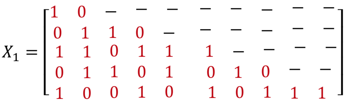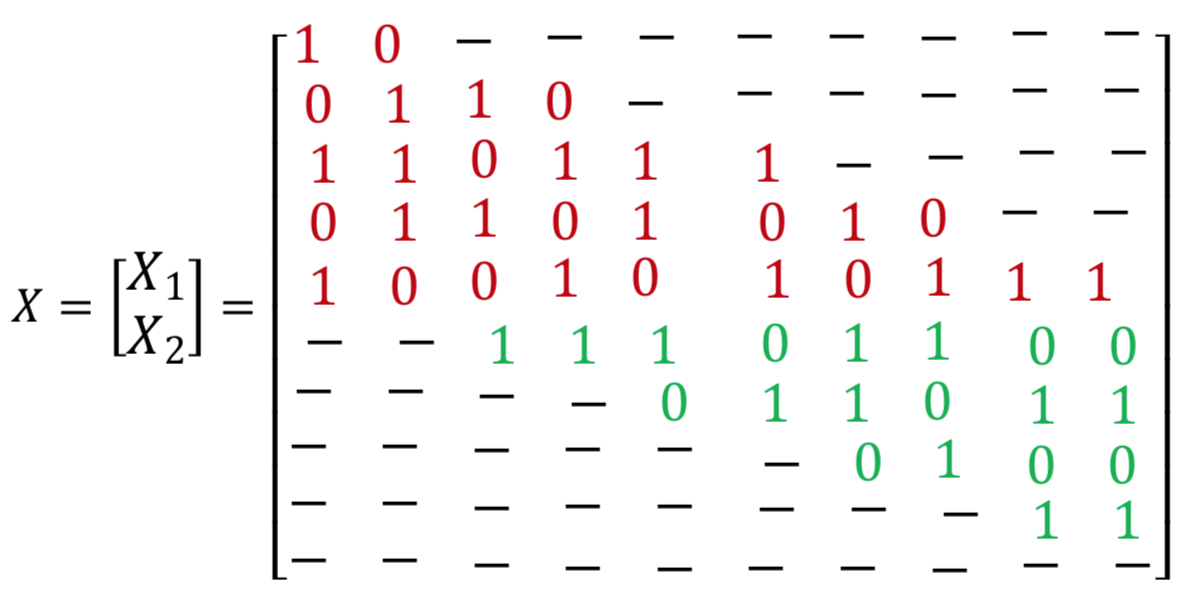 注:在矩阵X、X1和X2中,破折号是零。
