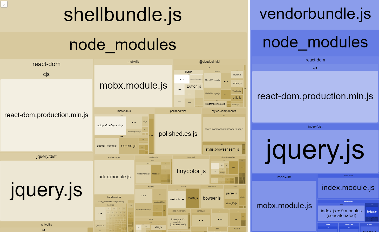 正如您所看到的,包作为react dom,jquery和mobx都在shell包和供应商包中。是否有可能只将它们放在供应商包中?