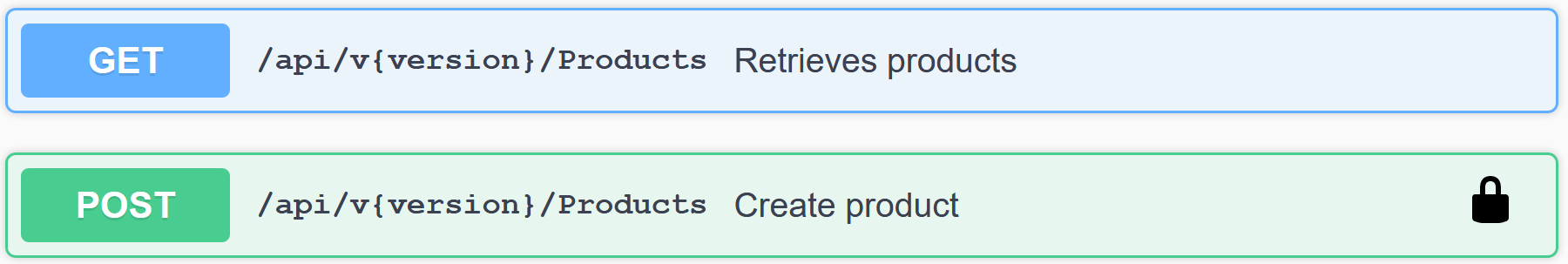 }其结果是,挂锁只出现在标记为AllowAnonymous属性而带有授权的操作旁边:
