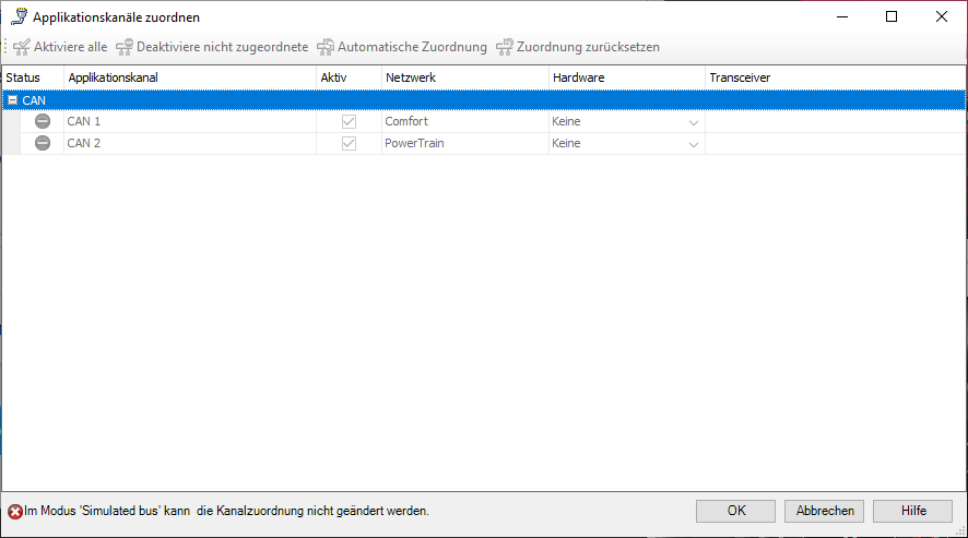 您可以使用Application.Networks获取每个通道,然后使用XL驱动程序库中的xlGetApplConfig函数获得CANoe项目的通道分配。这是XL驱动程序库手册。