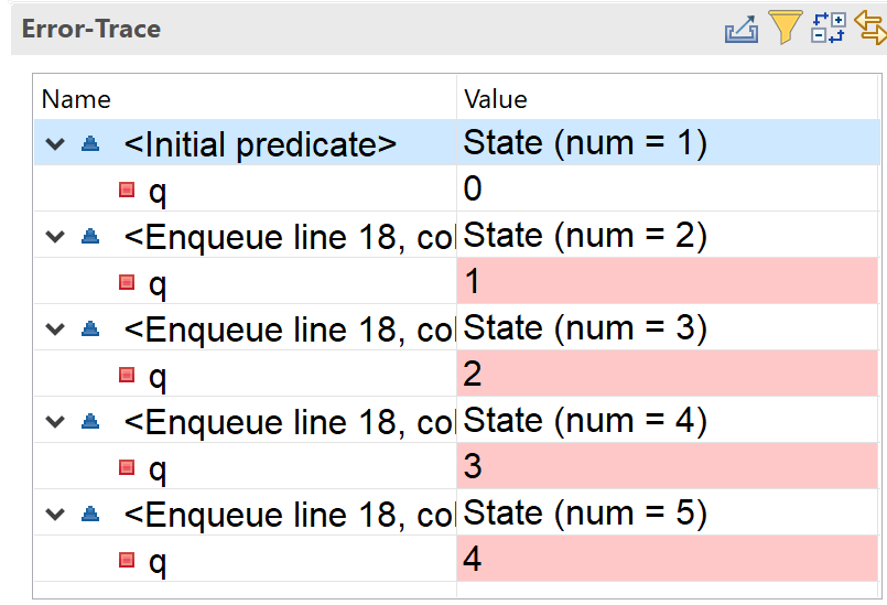 Enqueue == q' = q + 1 (* Element added *)