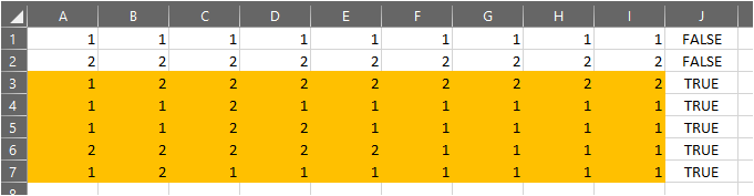=STDEV($A1:$I1)>0发布于 2020-11-21 08:51:19