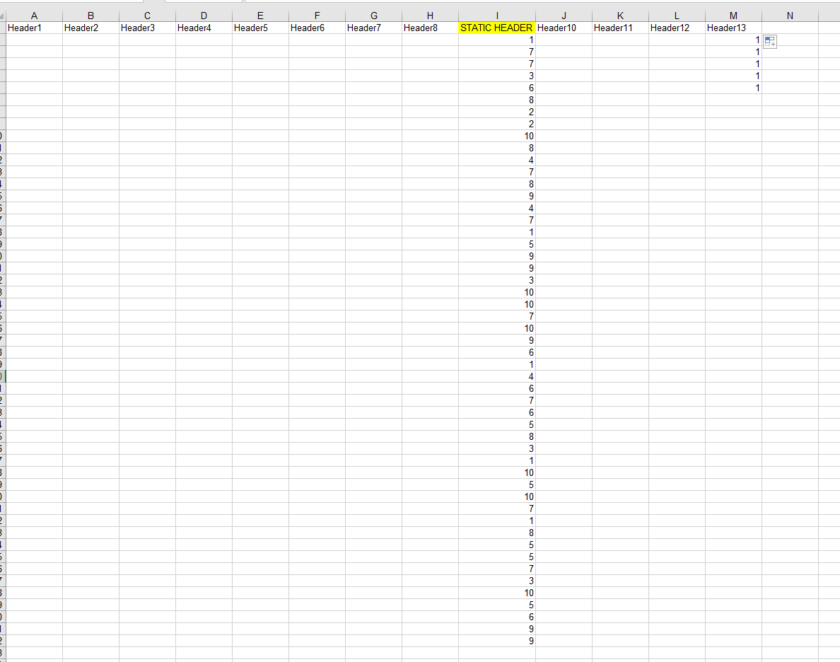 因此,下面这样的公式将返回1列和99999单元格的引用,其中静态标头是: