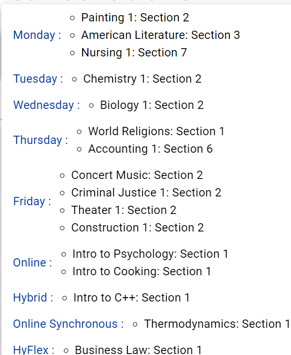 我在试着把学校取消的课程显示在选择菜单上。这是白天安排的: