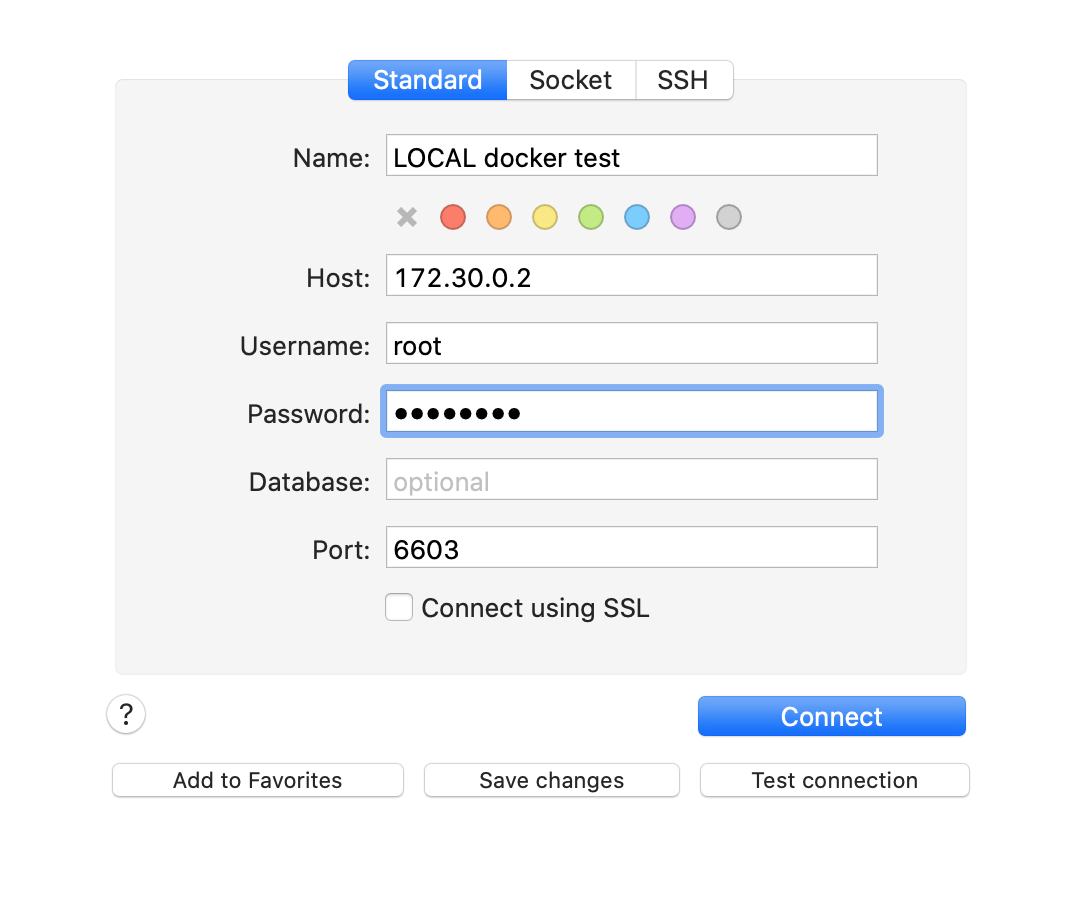 UPLOAD_LIMIT: 3000000000码头工人检查container_mysqllocal,得到'172.30.0.2‘。然而,当我试图通过SequelPro连接mysql时。它会产生连接失败的错误。如何将mysql连接到我的SequelPro / mysql工作台应用程序,我是否错过了任何配置?