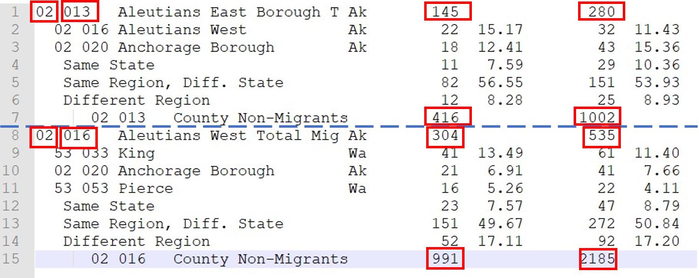 | 02 | 016 | Aleutians West Total Mig | 304 | 535 | 991 | 2185 |