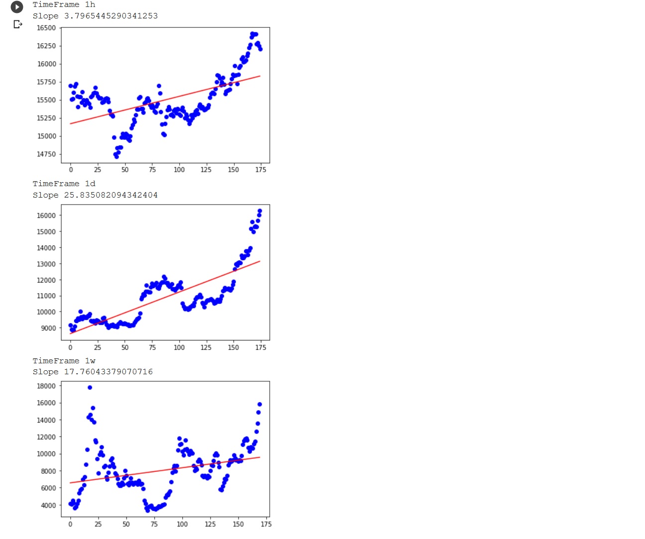 您需要修复y轴的x和y轴范围(将它们设置为一个固定值,例如0-20000),然后您应该能够看到斜率值是完全可比较的和直观的。