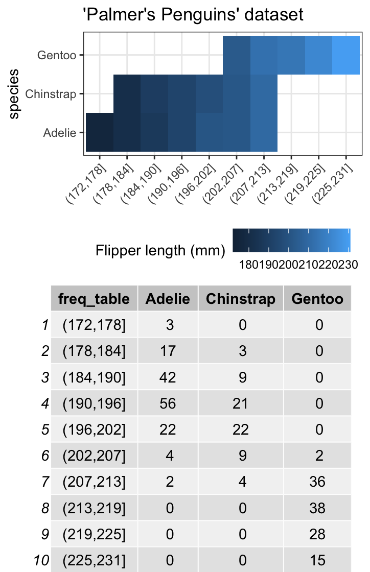 mutate(freq_table = cut(flipper_length_mm, breaks = 10)) %>%