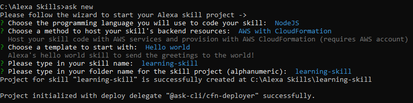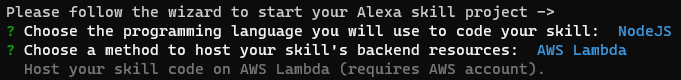 使用ask new设置新技能时选择了NodeJS,AWS使用CloudFormation。