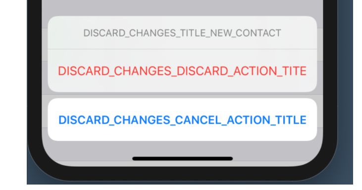 问题是丢弃操作表的文本看起来是这样的,而且它不是人类可读的。将Localizable.strings添加到Base.lproj中没有帮助