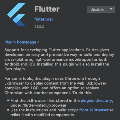 通过将颤振插件更新为51.0.2版本,有一条消息要安装JxBrowser。