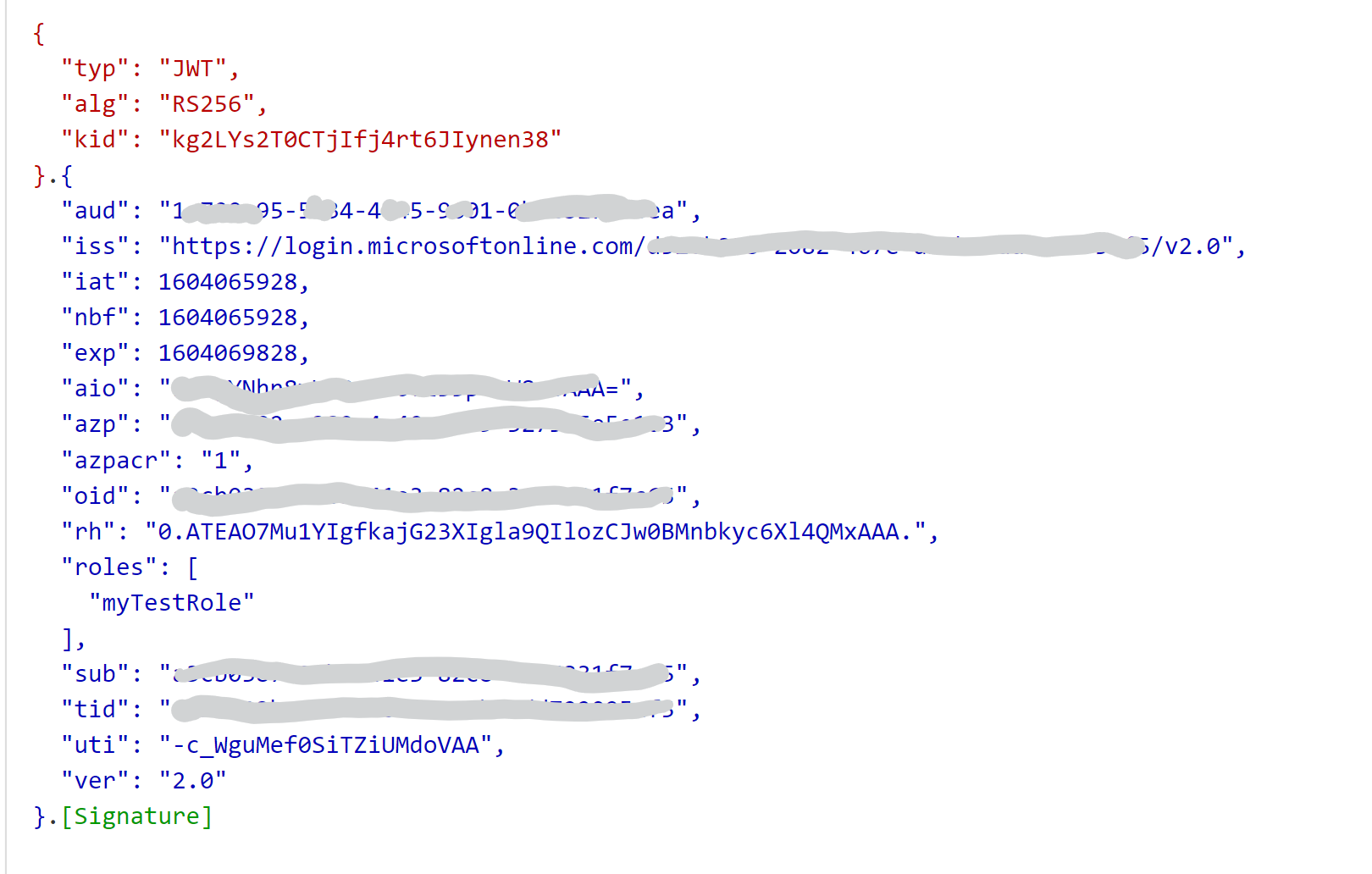 在v2令牌中,用户是应用程序注册的客户机ID (GUID),而发行者是https://login.microsoftonline.com/{tenantId}/V2.0。