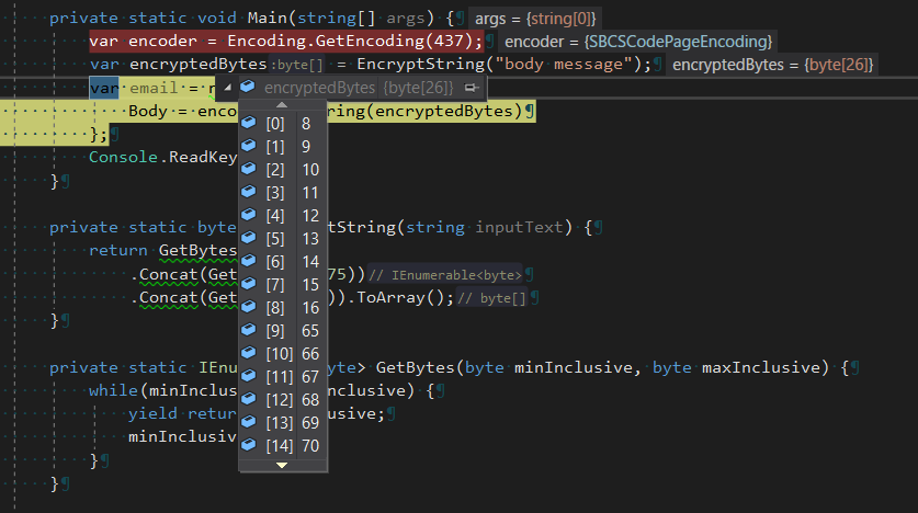 从C#代码(同时,只有通过历史记录才能访问),很明显使用了默认编码。这是无法推断的Cp437,这是你后来提供的信息(最初你说是ISO-8859-1或UTF-8或UTF-16,见历史)。由于发布的消息可以用Cp1252编码,但不能用Cp437编码,所以更有可能的是,Cp1252是使用的默认值,而不是Cp437。