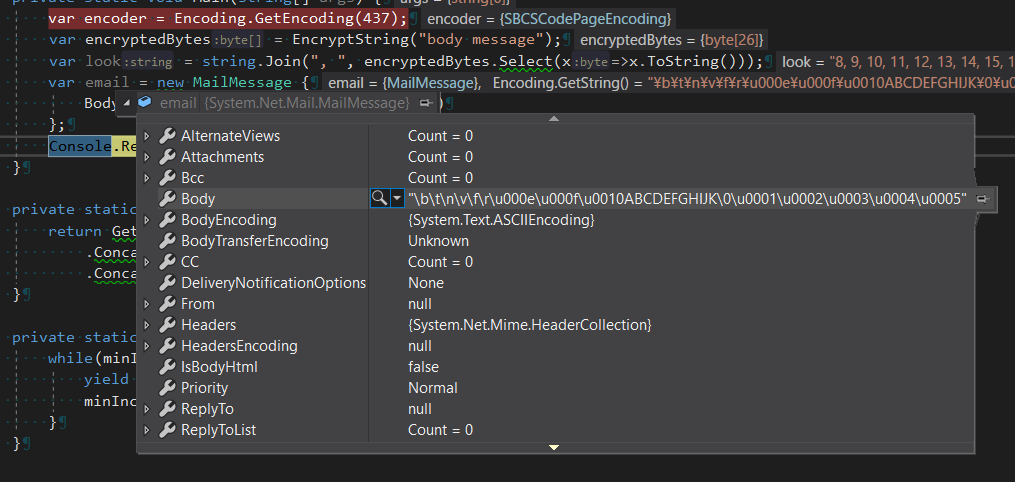 因此,最合理的解决方法是在二进制到文本编码代码中使用类似于Base64的C#,而不是字符集编码(与默认值ASCIIEncoding ( mail.BodyEncoding )和TransferEncoding.SevenBit ( mail.BodyTransferEncoding)相结合)。否则,这个问题将来可能会继续造成困难。