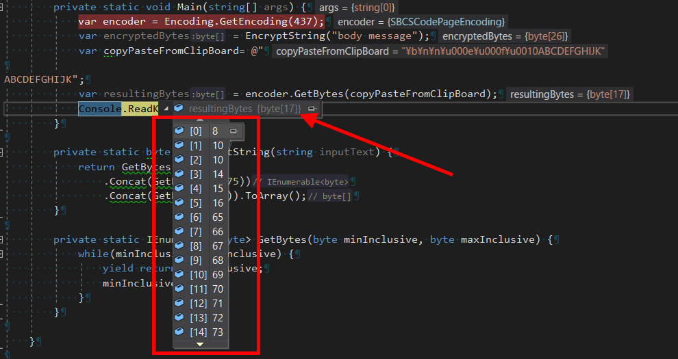 现在让我们用相同的编码恢复复制粘贴的字符串,看看是否得到相同的字节数组?剧透者: lol当然不是