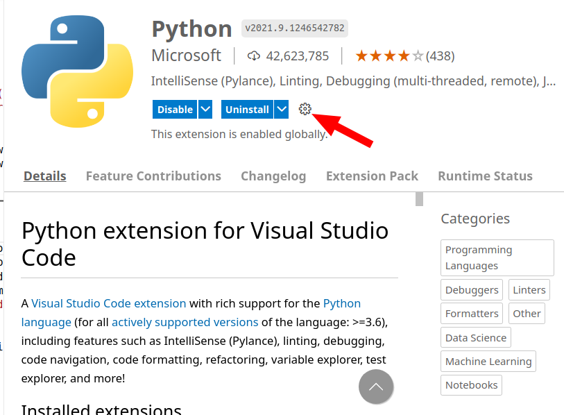 打开“扩展信息”页面(就像安装扩展名时一样)。当你点击齿轮时,你可以复制扩展ID (见下面)
