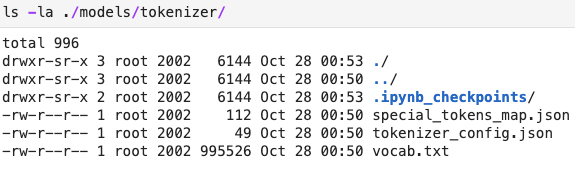 tokenizer.save_vocabulary("./models/tokenizer/")