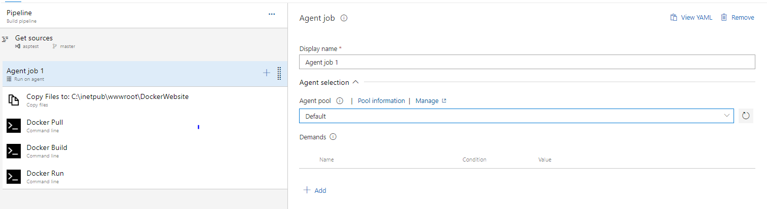 顺便说一下,如果您在Azure中有集装箱登记服务连接,您可以使用码头作业或码头工组成任务。