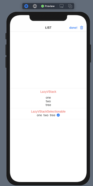 public struct LazyVStackSelectionable<SelectionValue, Content> : View where SelectionValue : Hashable, Content : View {