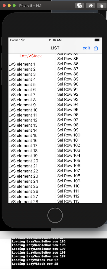 使用Asperi的解决方案,我失去了LazyVStack的适当性,如果不显示所有行也会加载(而且也不能滚动: