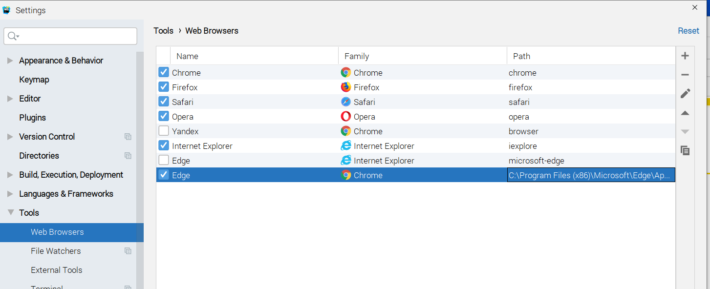 这在原则上应该适用于边缘(因为新的边缘是基于铬的),修复WEB-45326应该解决这个问题。现在,我建议将边缘设置为设置工具中的一个新的自定义浏览器