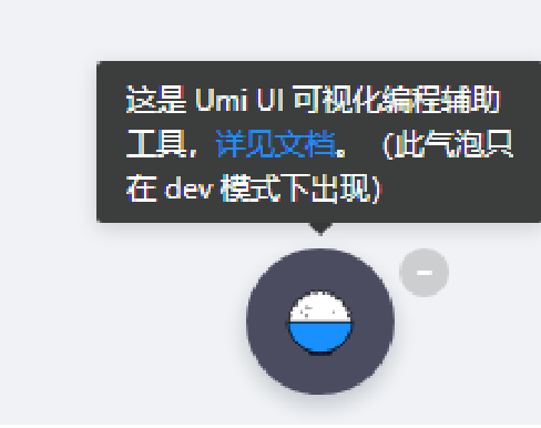 我是Ant Design的新手,我从Ant的git获得项目,我想禁用/隐藏显示的Umi UI气泡。我参考了很多网页和谷歌,但这对我来说不管用。它教会我创建一个.env并添加了代码UMI_UI=none umi dev。