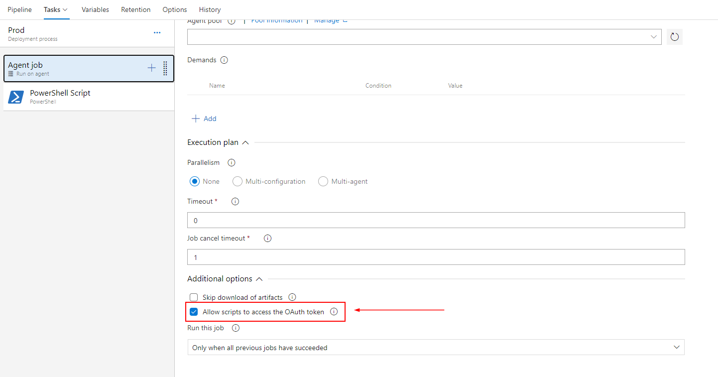 我试图在Azure DevOps服务器中通过DevOps任务执行git命令,并且面临身份验证问题。更具体的是,任务始终与错误代码1一起退出,因为它要求用户名和密码。我试图执行的git命令是: