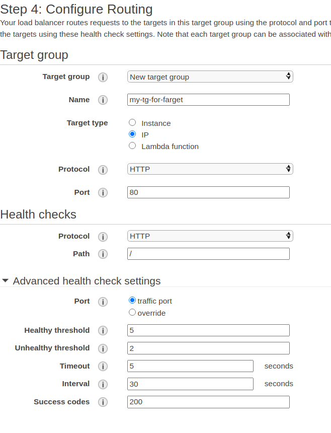 我看到侦听器允许指定一整组内容。但是,我对使用服务创建的目标组感到困惑。It - IP -type组,在端口80上监听。无论是在服务创建/配置期间选择HTTP还是HTTPS。