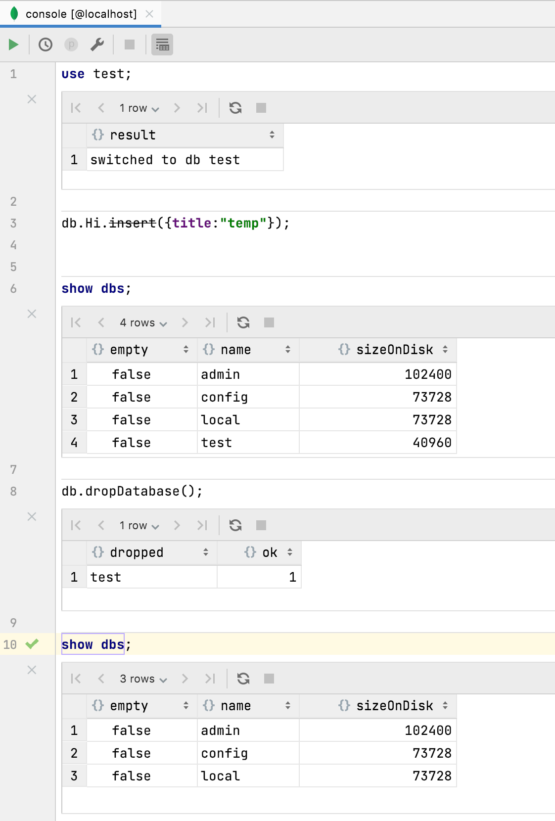 它是mongo中的数据库,而不是Datagrip中的数据库。