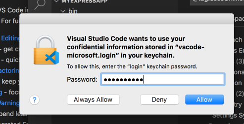 $ sudo apt install gnome-keyring因此,我认为在MacOs上,您也可以轻松地通过安装密钥环系统来解决这个问题。我不知道MacOs,所以我不能提供一个名字。