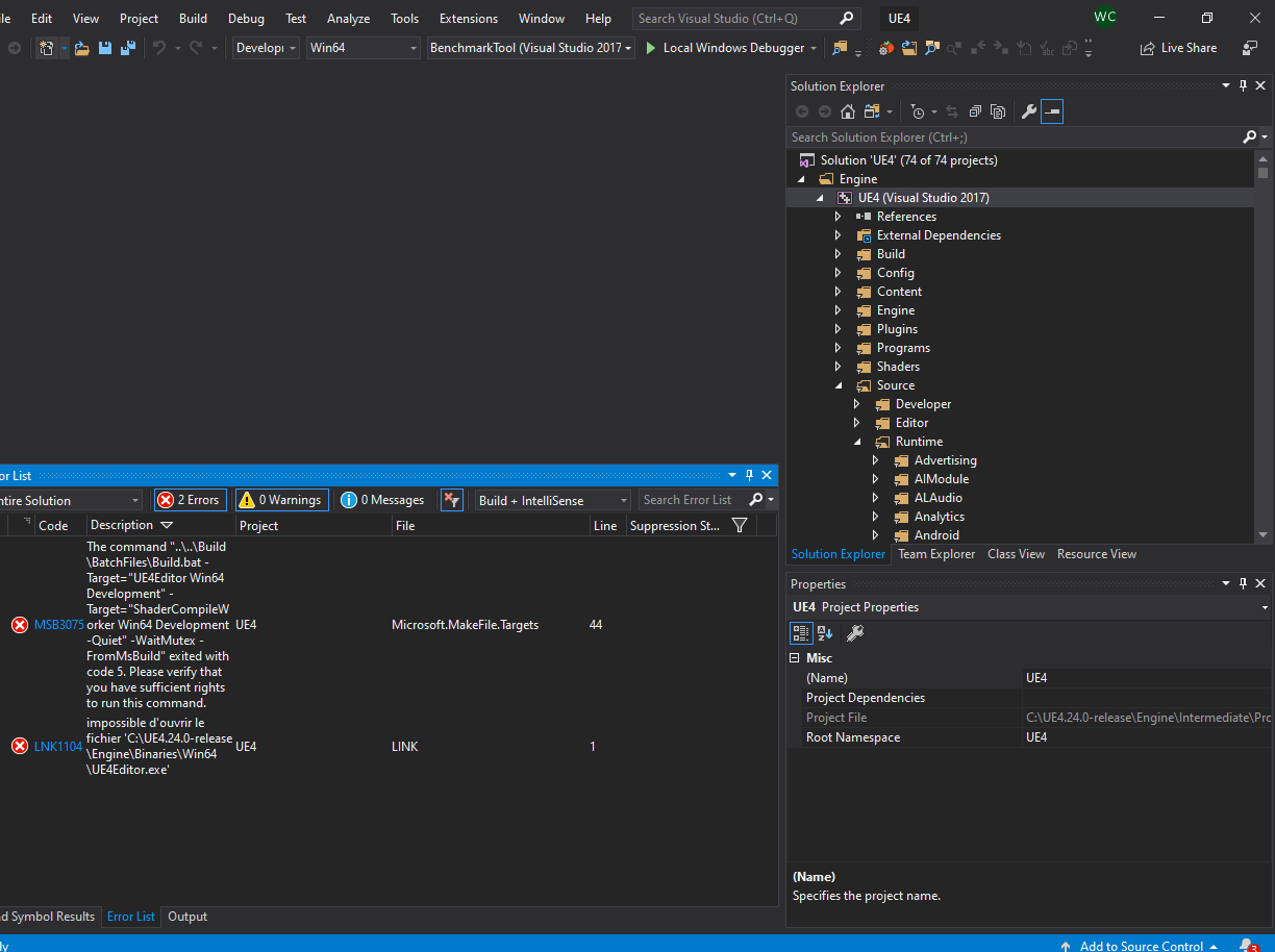 我在启动我的UE4项目时遇到了问题,每当我试图启动它时,我都会得到一个错误"_Filed to error Edito_r“。