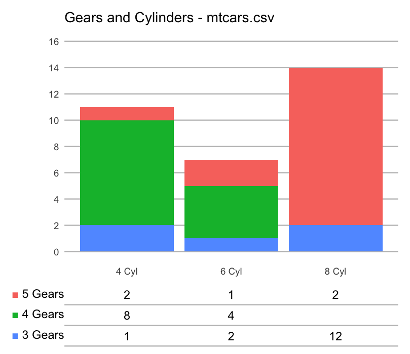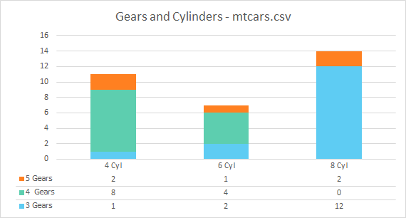 labs(title = "Gears and Cylinders - mtcars.csv", y = "") +