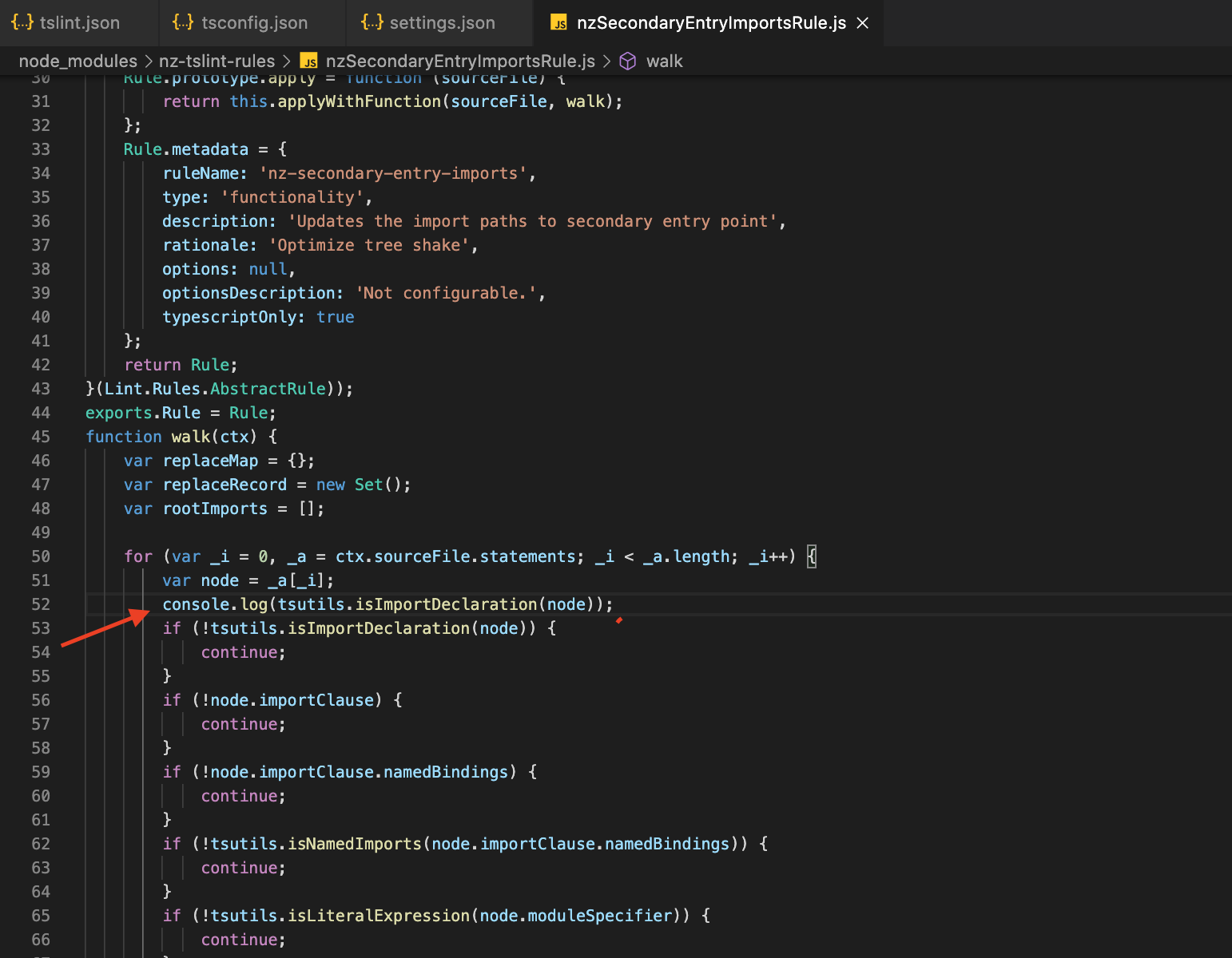 我在nzSecondaryEntryImportsRule.js文件中使用控制台日志成功地确保了脚本的执行