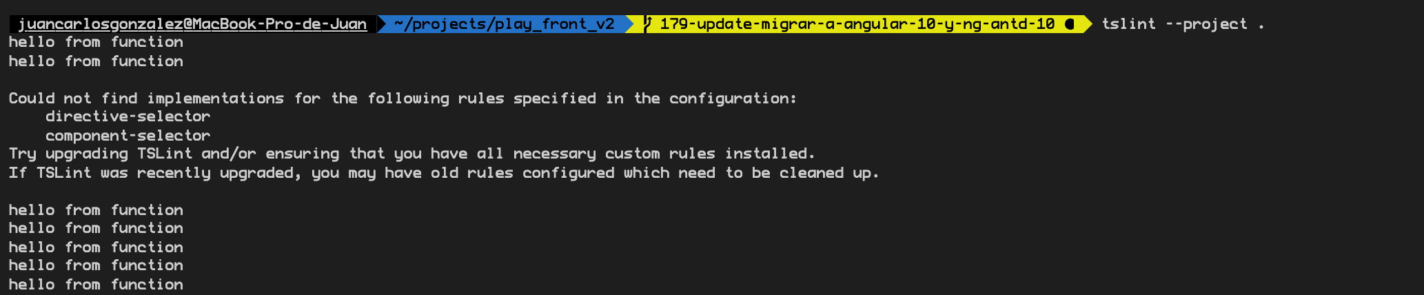 我从应用程序根目录中执行以下命令:"tslint“。