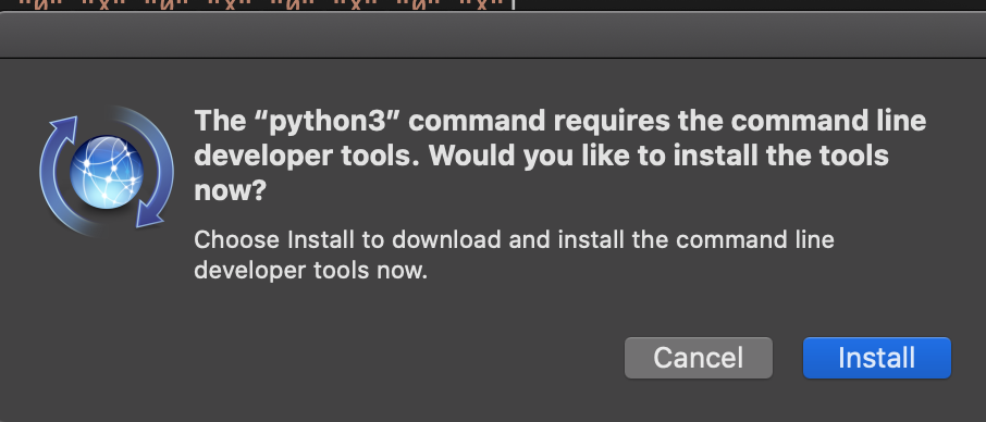 "python3“命令需要命令行开发工具。你想现在安装这些工具吗?
