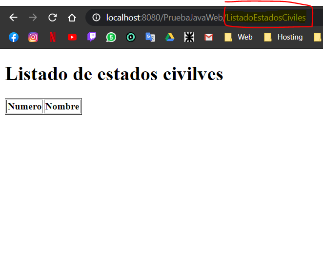 这是调用obtenerEstadosCiviles()函数的servlet,我希望表中充满了数据