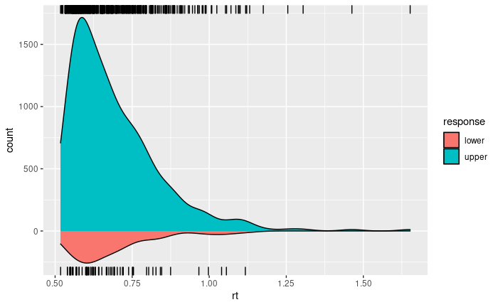 geom_rug(data=subset(rt1, response=="lower"), aes(rt, fill="lower")) +