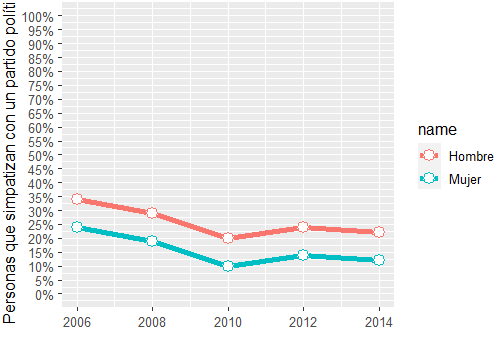 ylab("Personas que simpatizan con un partido político") +